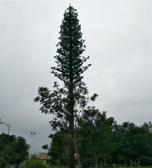 仿生樹通訊塔是通信行業(yè)用于偽裝天線最常用樹型之一,高10米~35米。樹冠整體造型成寶塔狀。 仿生樹通訊塔采用高強(qiáng)度的鍍鋅管塔為主桿,外敷高分子仿真樹皮,透波性率強(qiáng),阻燃性好,達(dá)到I級(jí)阻燃指標(biāo),保證20年不老化。樹葉采用抗紫外線PU高性能防阻燃環(huán)保材料。耐腐蝕性能好,耐老化耐高溫防阻燃,更加環(huán)保,防紫外線強(qiáng)。整體外形不僅美觀,仿真度高、經(jīng)久耐用,而且與周邊環(huán)境特別協(xié)調(diào),非常適用于對(duì)環(huán)境美化要求較高的基站如:高級(jí)住宅區(qū)、主題公園、風(fēng)景名勝旅游區(qū)、動(dòng)植物保護(hù)區(qū)及游樂場(chǎng)所。
