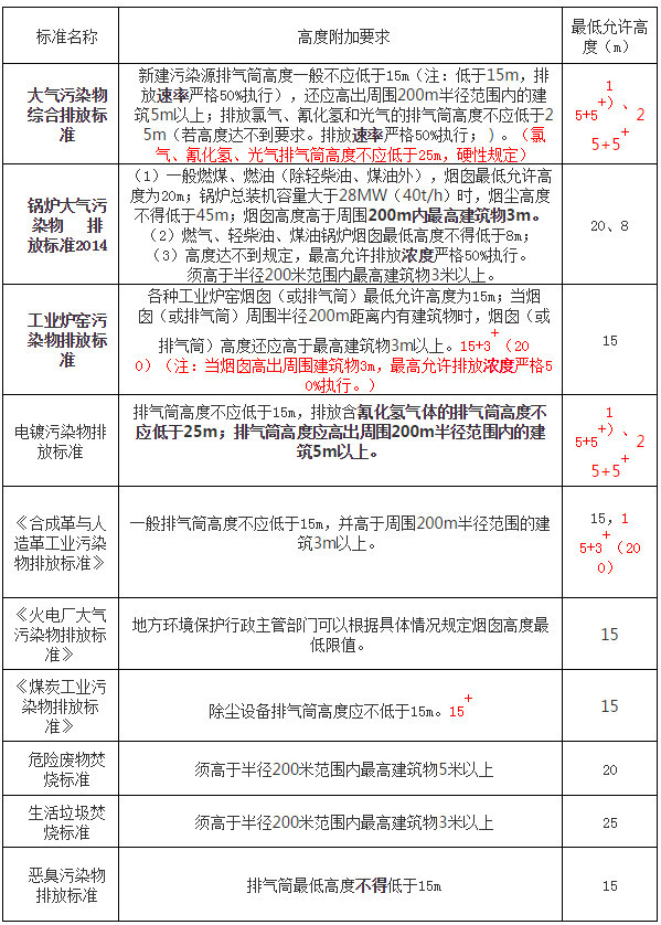 二、各大氣排放標(biāo)準(zhǔn)對排氣筒高度的規(guī)定